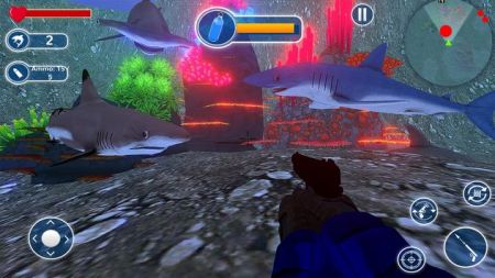 1、你可以在水下世界看到许多鲨鱼,自由地进行趣味的狩猎,这种感觉非常的奇妙。