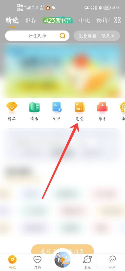 1、在懒人听书app的听吧界面点击“领15天会员”