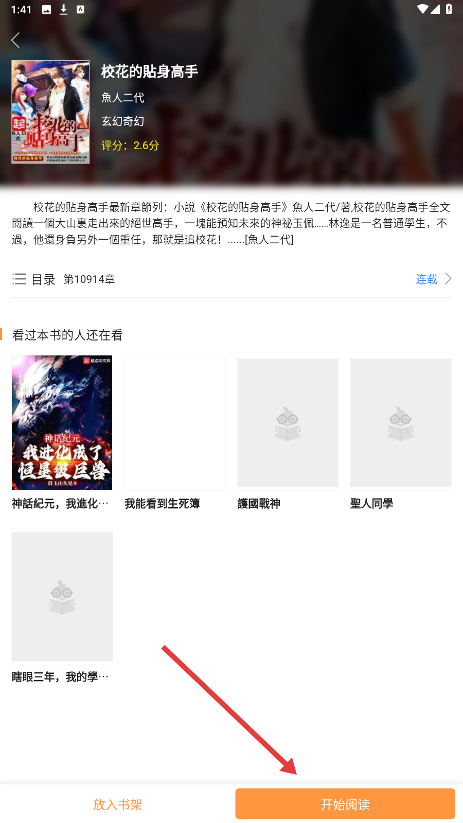 3、进入《校花的贴身高手》详情页,点【开始阅读】,开启小说阅读。