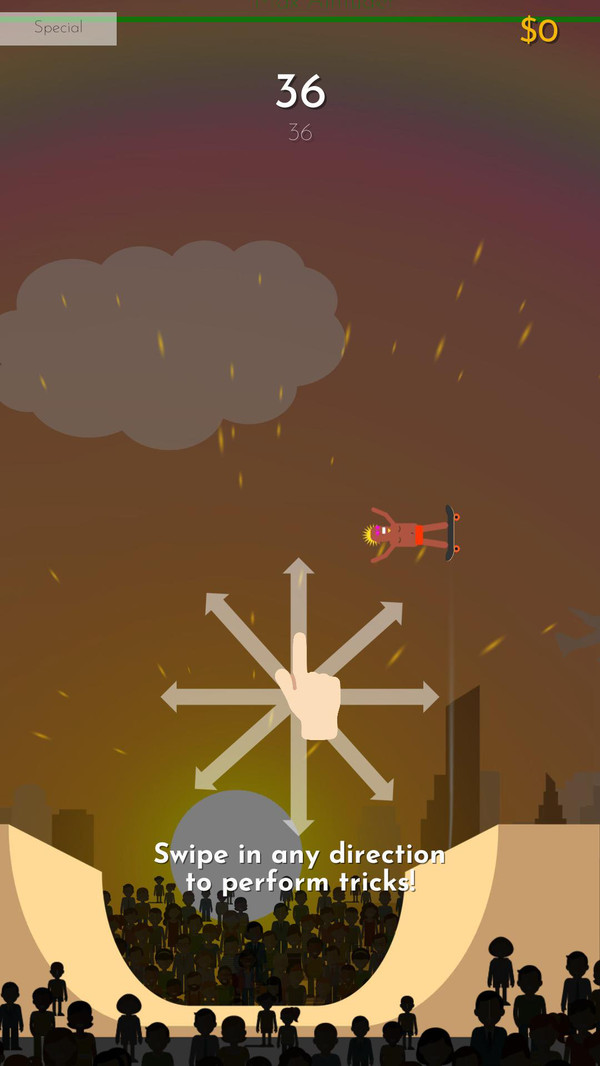 1、这款游戏里玩家也是要让滑板运动员尽可能地飞得更高,可以完成更多动作。