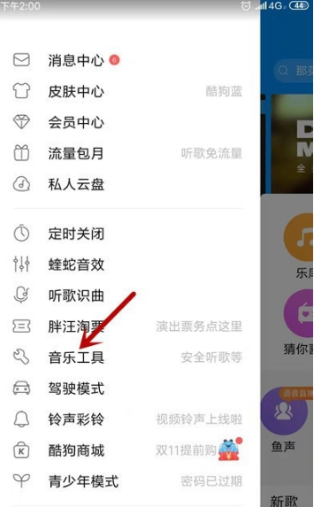 2、然后点击页面上的“音乐工具”,点击进入。
