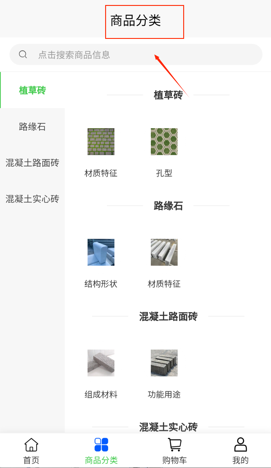 2、建材分类包含8大品类36个子类,支持按规格/价格/距离筛选,点击商品查看详细参数和工程案例呀。常用分类可收藏置顶哟。