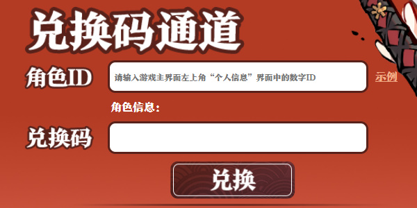 2.进入网站页面以后,将自己的角色ID和有效兑换码输入,点击【兑换】,奖励可自动发送邮箱。