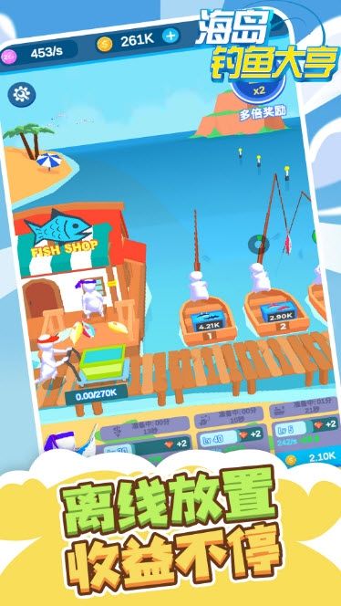 《海岛钓鱼大亨》是一款趣味的模拟钓鱼经营游戏,欢乐的内容给你带来不一样的体验,各种各样的趣味冒险给你带来不一样的享受,在海岛钓鱼大亨里面有着非常多的奖励,在这里开始你的钓鱼冒险吧,不断地扩大自己的钓鱼经营规模,喜欢的玩家快来下载这款游戏吧。