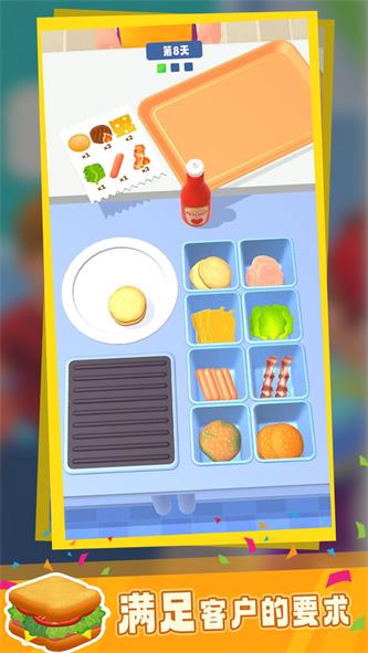 游戏里玩家要自己去研究出不同口味的汉堡,让更多顾客满意,去体验模拟的快乐。