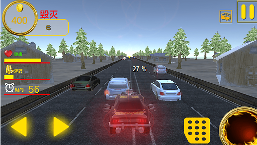 2、精致的游戏风格,逼真的游戏场景能很好的满足玩家的体验需求,同时驾驶和射击让你成为一个驾驶高手!