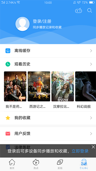 进入影视大全,开始是在首页,点击右下方个人中心。
