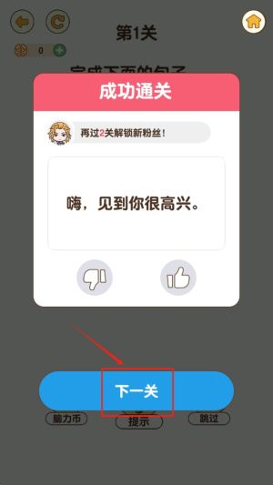 4、进入下一关:成功完成后,点击“下一关”按钮进入下一个关卡。