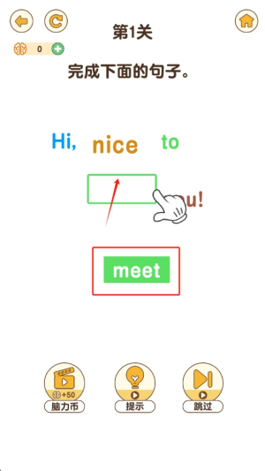 2、完成句子:在关卡中,将正确的单词拖动到句子中的空白处,以完成句子。
