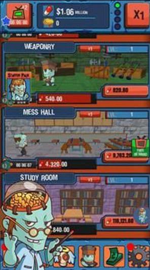 3、不断收集药物资源,使用大量的药丸来强化和改善丧尸家园,十分奇特感受魔性冒险。