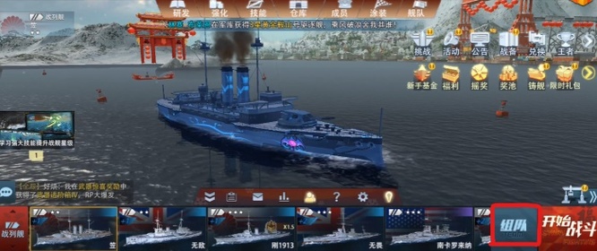 一、首先再游戏主界面可以看到,下面一栏右侧的“组队“按钮,点一下。