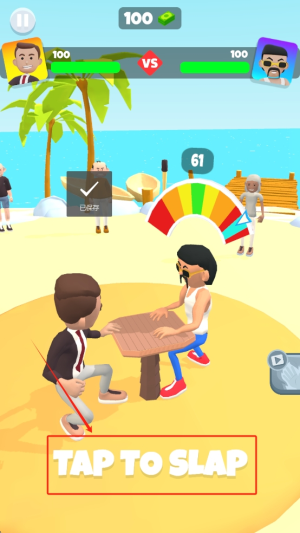 4、进行游戏:在游戏进行中,看准时机点击“TAP TO SLAP”按钮,用巴掌击败对手。