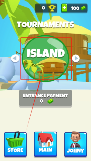 2、选择模式:在“TOURNAMENTS”界面,选择“ISLAND”模式并确认参赛费用。