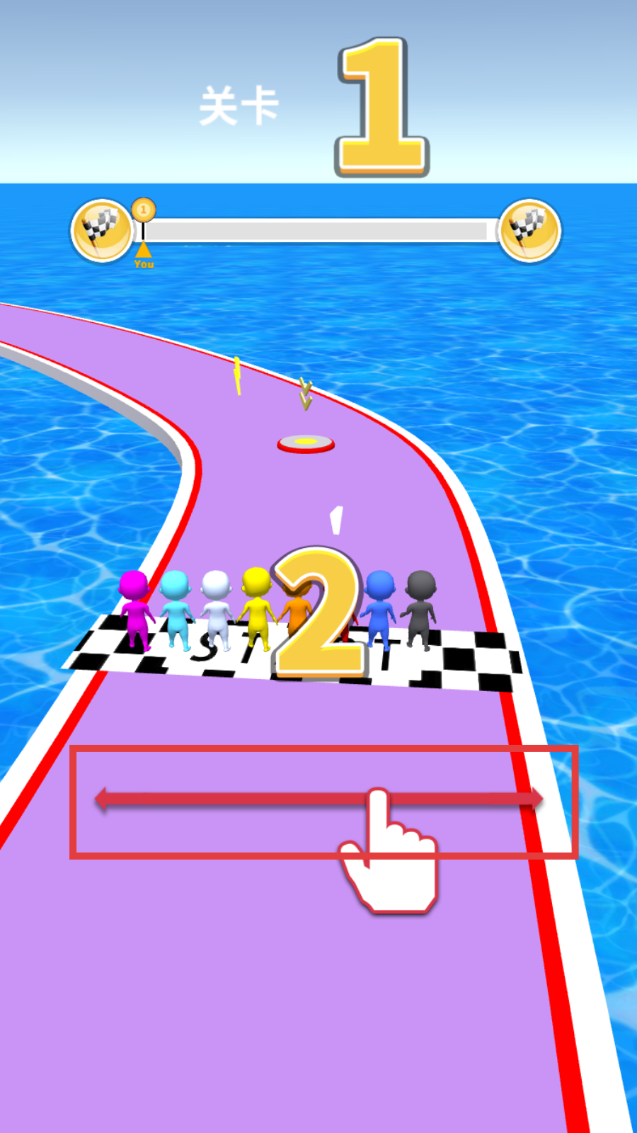 2、倒计时结束后,左右滑动屏幕控制角色移动,灵活调整路径应对弯道。