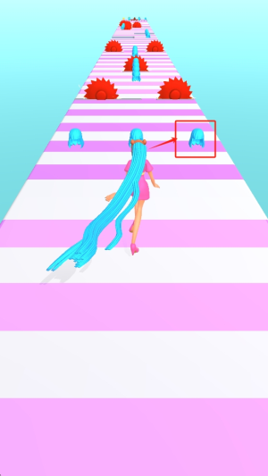 2、收集头发前进:在道路上不断收集头发让其变长,借助场景元素积累发丝,秀出秀丽长发,通过收集提升自身优势。