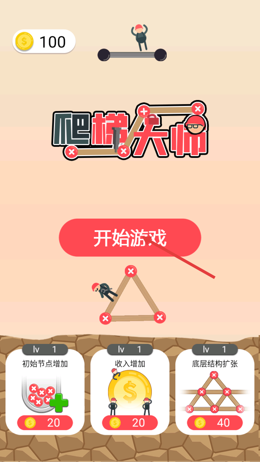 4、基础搭梯操作:点击屏幕设定梯子角度与长度,精准连接目标平台形成安全通行路径。