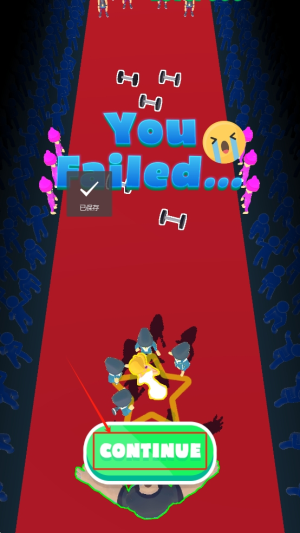 4、重新开始:如果游戏失败,点击“CONTINUE”按钮重新开始游戏。
