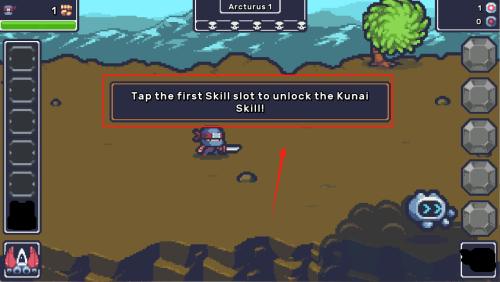4、学习技能:按提示“Tap the first Skill slot to unlock the Kunai Skill”点击首个技能槽,解锁苦无技能。