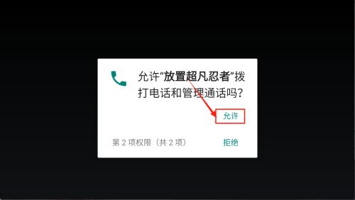 1、授权权限:屏幕弹出“允许放置超凡忍者拨打电话和管理通话吗?”时,点击“允许”继续。