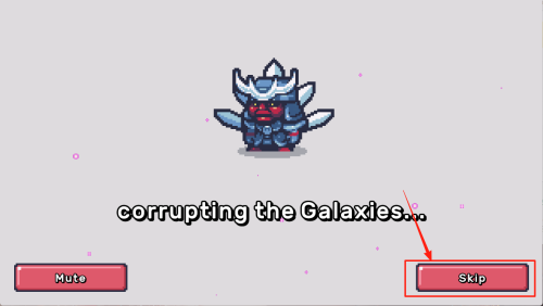 3、跳过动画:出现“corrupting the Galaxies.! Mute skip”提示时,点击“skip”直接进入游戏。