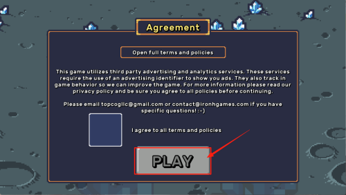 2、阅读协议:在“Agreement”页面勾选“I agree to all terms and policies”后,点击“PLAY”。