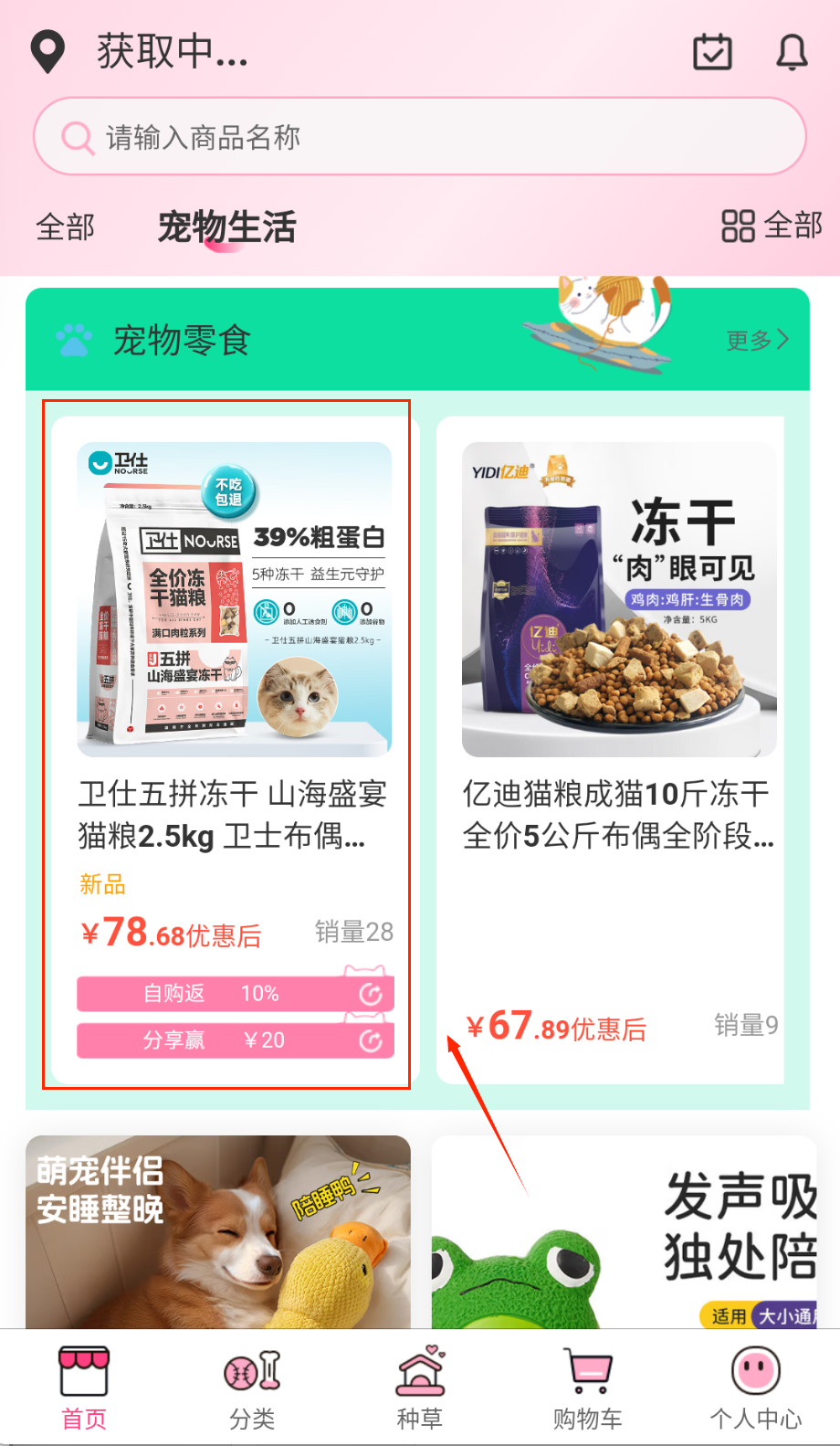 1、打开应用后即可浏览各类宠物用品信息,包括食品、玩具、洗护等商品,通过分类或关键词搜索快速找到目标产品。