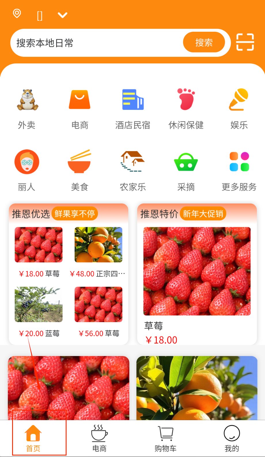 1、打开推恩团购APP后,可通过首页推荐或搜索栏查找目标商品,分类浏览功能支持按需求筛选衣、食、住、行等不同类目。