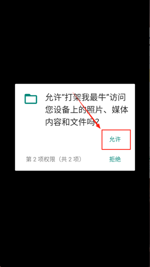 3、授权文件:当询问“允许打架我最牛访问照片、媒体内容和文件吗?”时,点击“允许”。