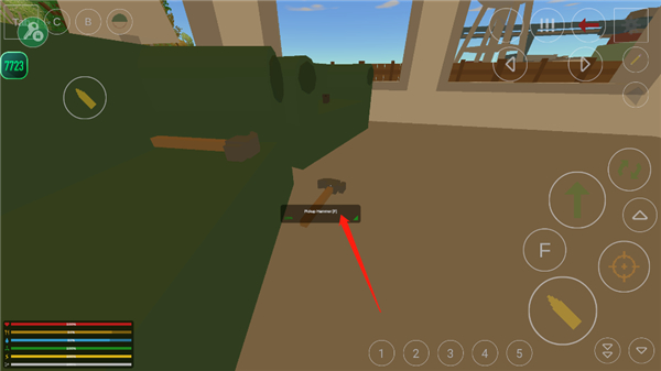 7、用户拾取的物品下方会显示并标记出来,玩家只需点击标记的序号,即可使用,如2号的铁锤,之后就需要玩家自己探索啦。