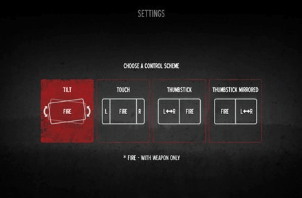 进入游戏玩家需要在TILT、TOUCH、THUMBSTICK、THUMBSTICK MIRRORED四种操作方式中,选择一种操作模式(操作模式在主界面右下角设置中选择)。