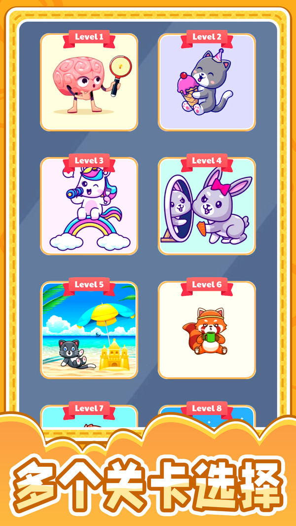 1、你可以选择不同的级别,而且里面每个关卡都是有不同的形状可供寻找。