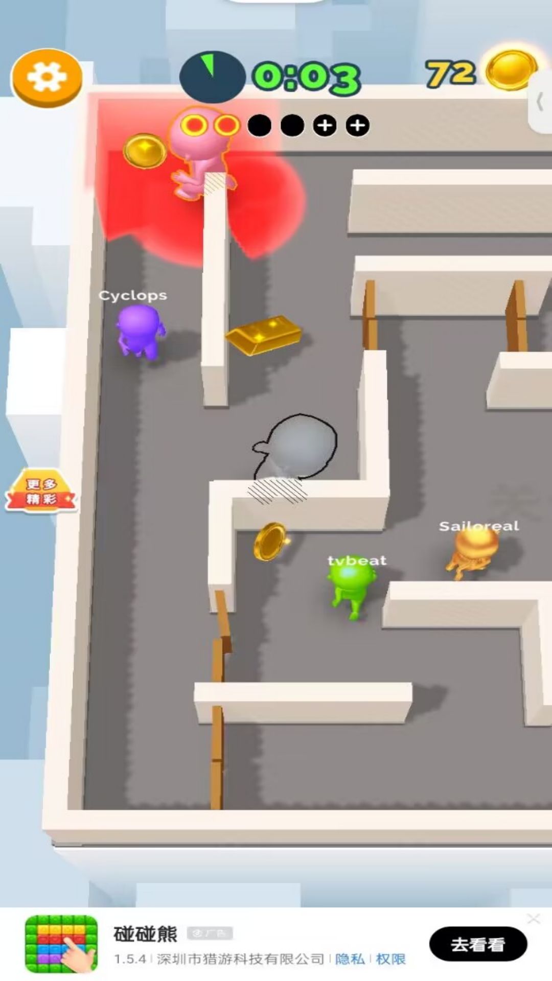1、疯狂躲躲躲游戏里抓捕者有抓捕和定位逃跑者的能力,你必须小心。