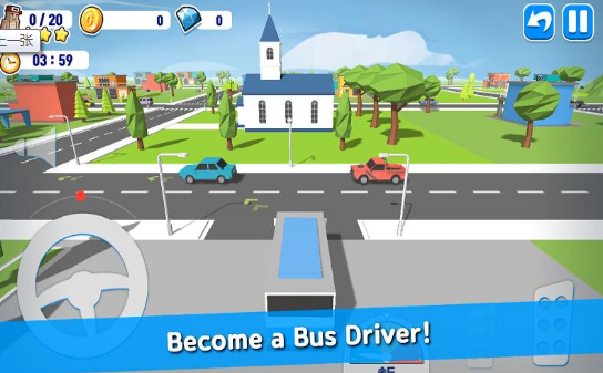 3、在这款VIVA巴士模拟驾驶里面有着可爱的卡通模型、虚拟控制、来开始你的游戏吧。