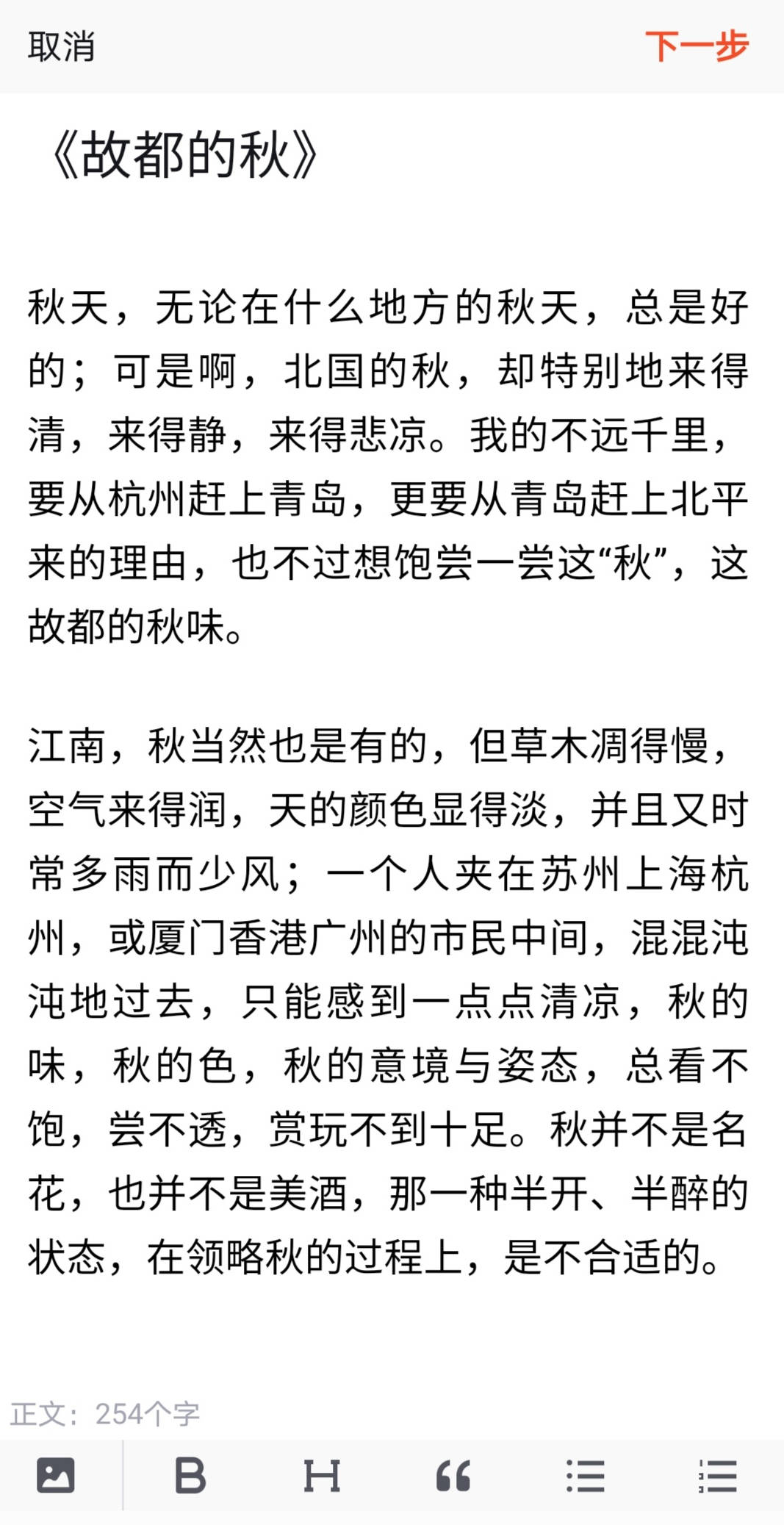 1)点击“发布文章”,进入文章编辑器,编辑文章标题和正文。目前APP暂时不支持发布图集和视频,如需发布图集和视频,请用电脑登录官网发布。