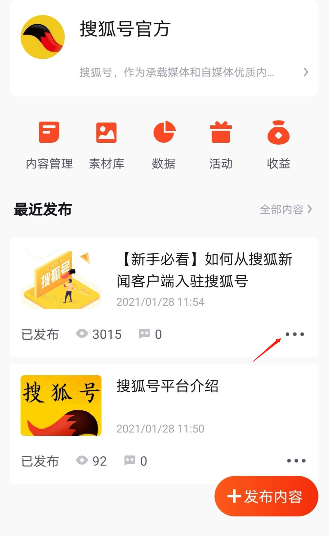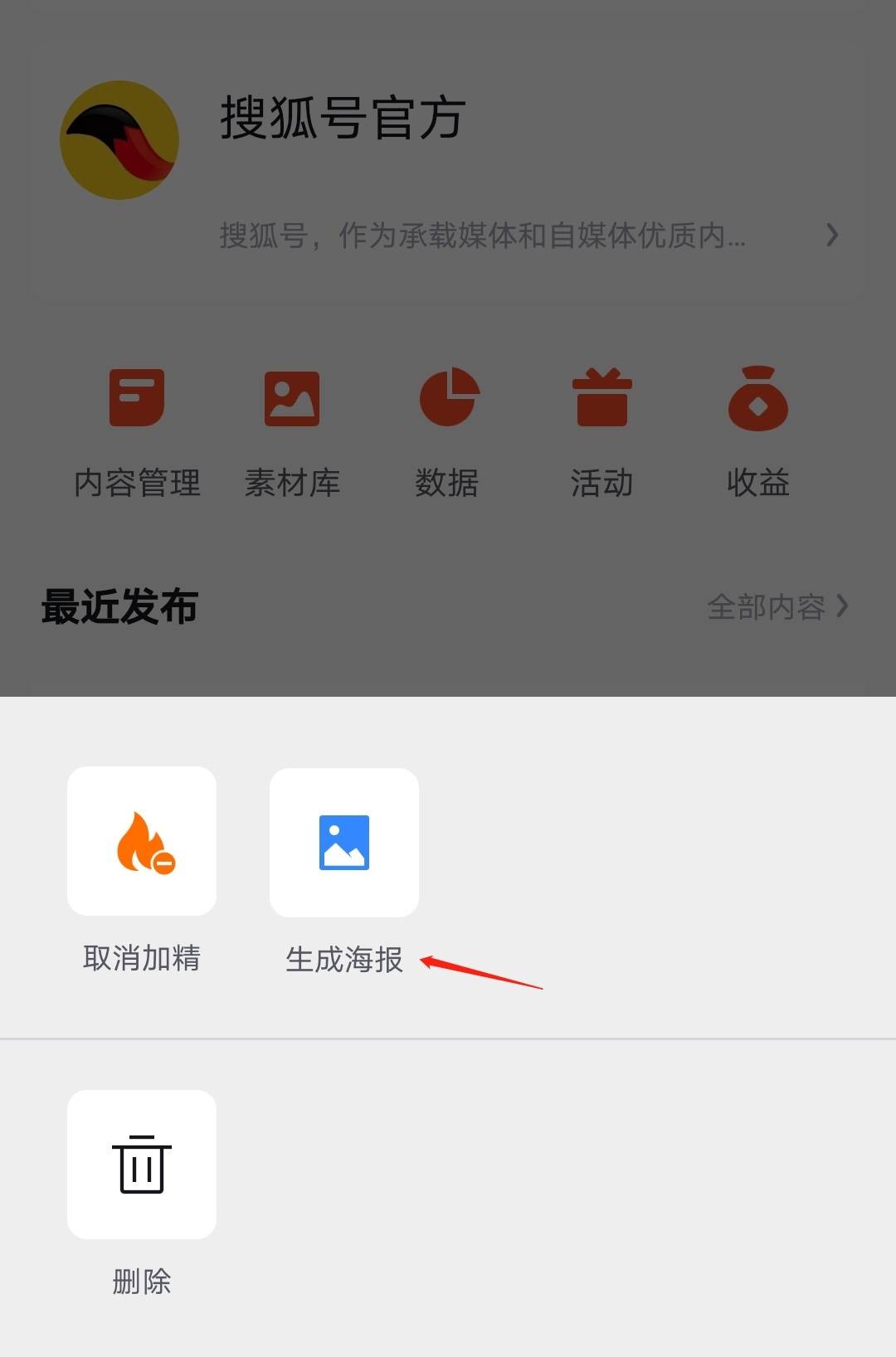 2)在搜狐号页面,您还可以管理内容和素材库,查看图文数据表现,参与搜狐号官方组织的各类活动,查看近期收益情况等。