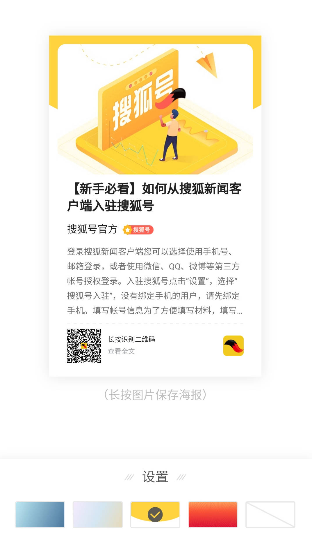 2)您还可以将自己的文章生成为精美的海报进行分享,被分享者扫描海报上的二维码,即可阅读文章,并关注文章作者。