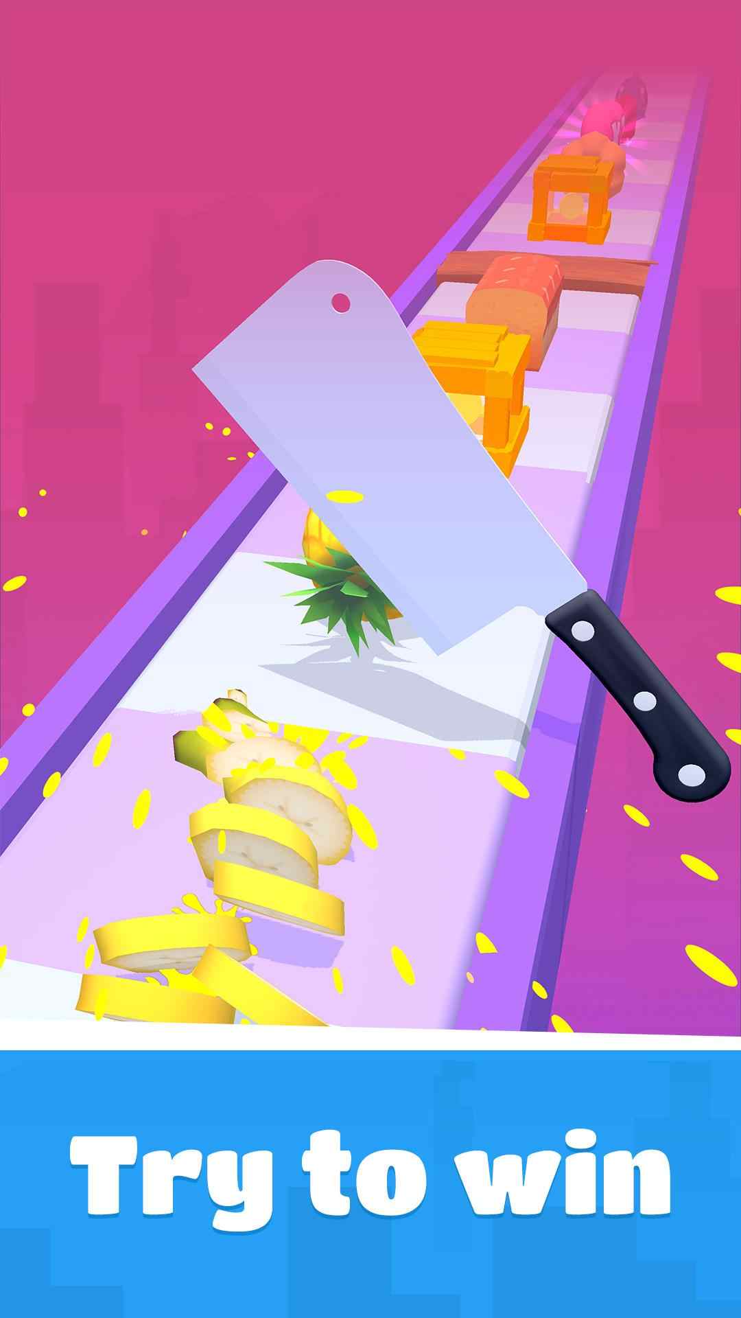3、只要拖动屏幕完成你的切片挑战,都可以赢得大量的金币,你准备好在这里开始你的游戏了吗