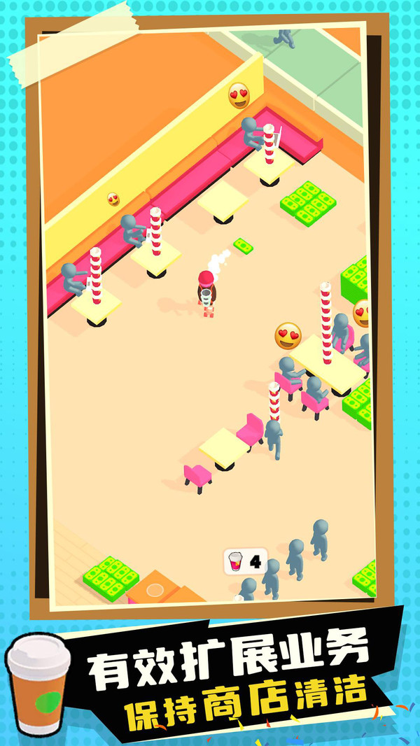 2、这款游戏内去建立一个奶茶帝国,销售各种饮料,保持店铺的清洁。