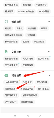 1、打开软件,点击其他应用中的“网页转应用”选项。