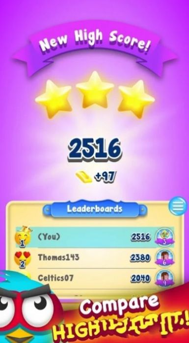 3、在气泡反弹里面玩家口语去免费解锁更多的英雄人物,匹配团队,保护小鸟。