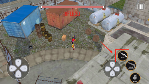 1、查看装备:出现“RIFLE30”时,表示已获得步枪武器,点击屏幕继续。