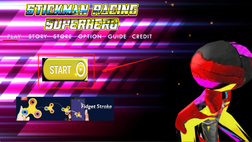 2、进入主菜单:在“STICKMAN RACING SUPERHERO”主界面,点击“PLAY”开始游戏。