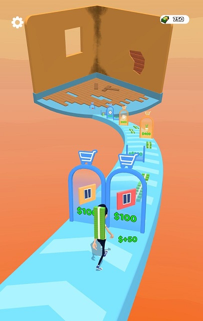 1、继续向前跑,通过不同的门来增加你的钱数,钱越多对于玩家来说越重要。
