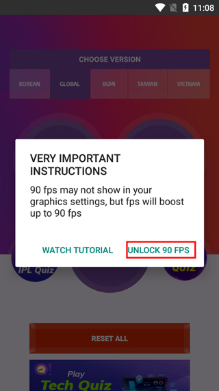 1、打开软件,选择全局模式global,再点击解锁90帧模式。