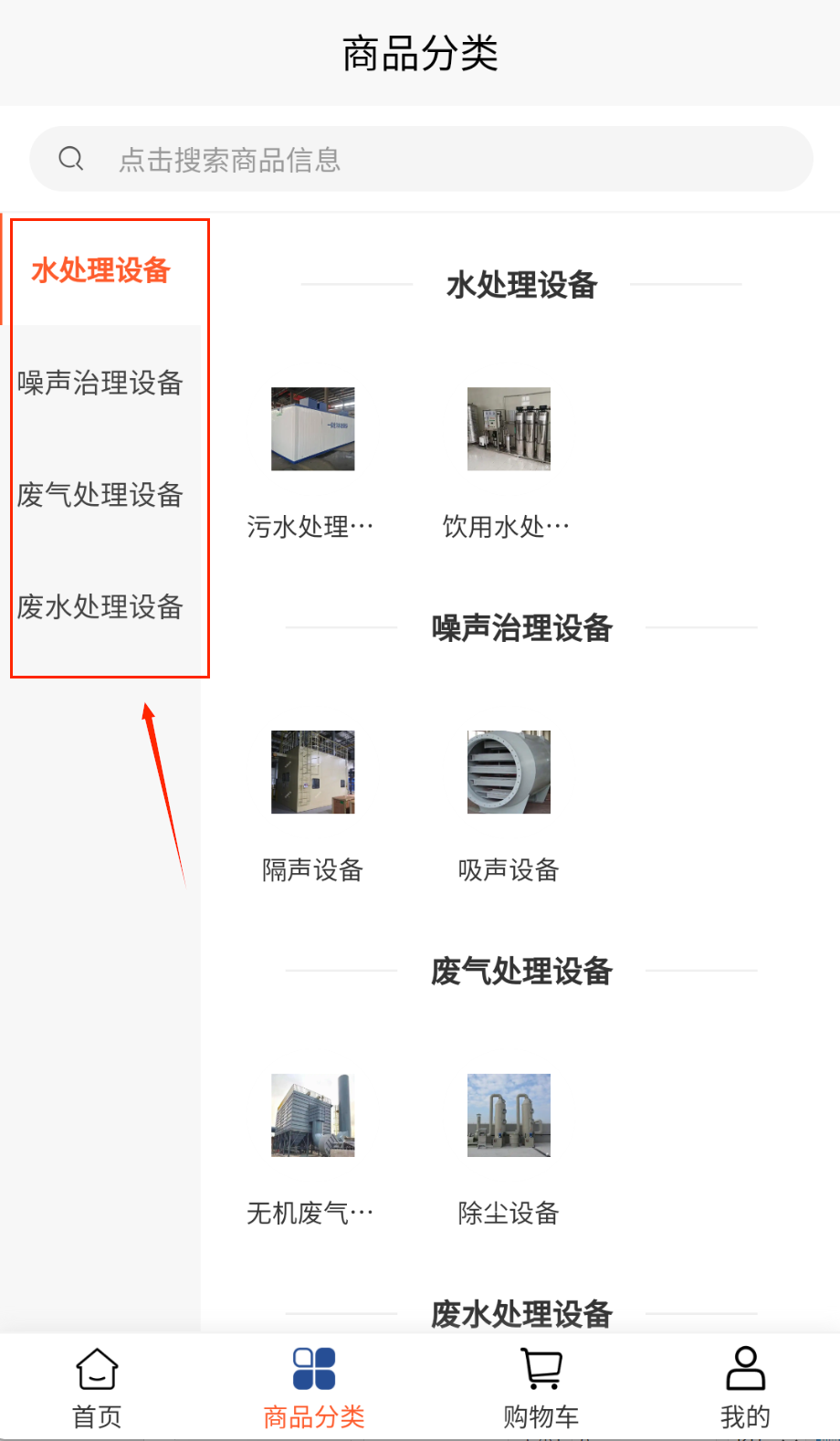 1、企业认证需上传营业执照和环保资质,系统提供8大类设备分类,包含污水处理、空气净化等,点击设备可查看详细参数和案例效果哦。