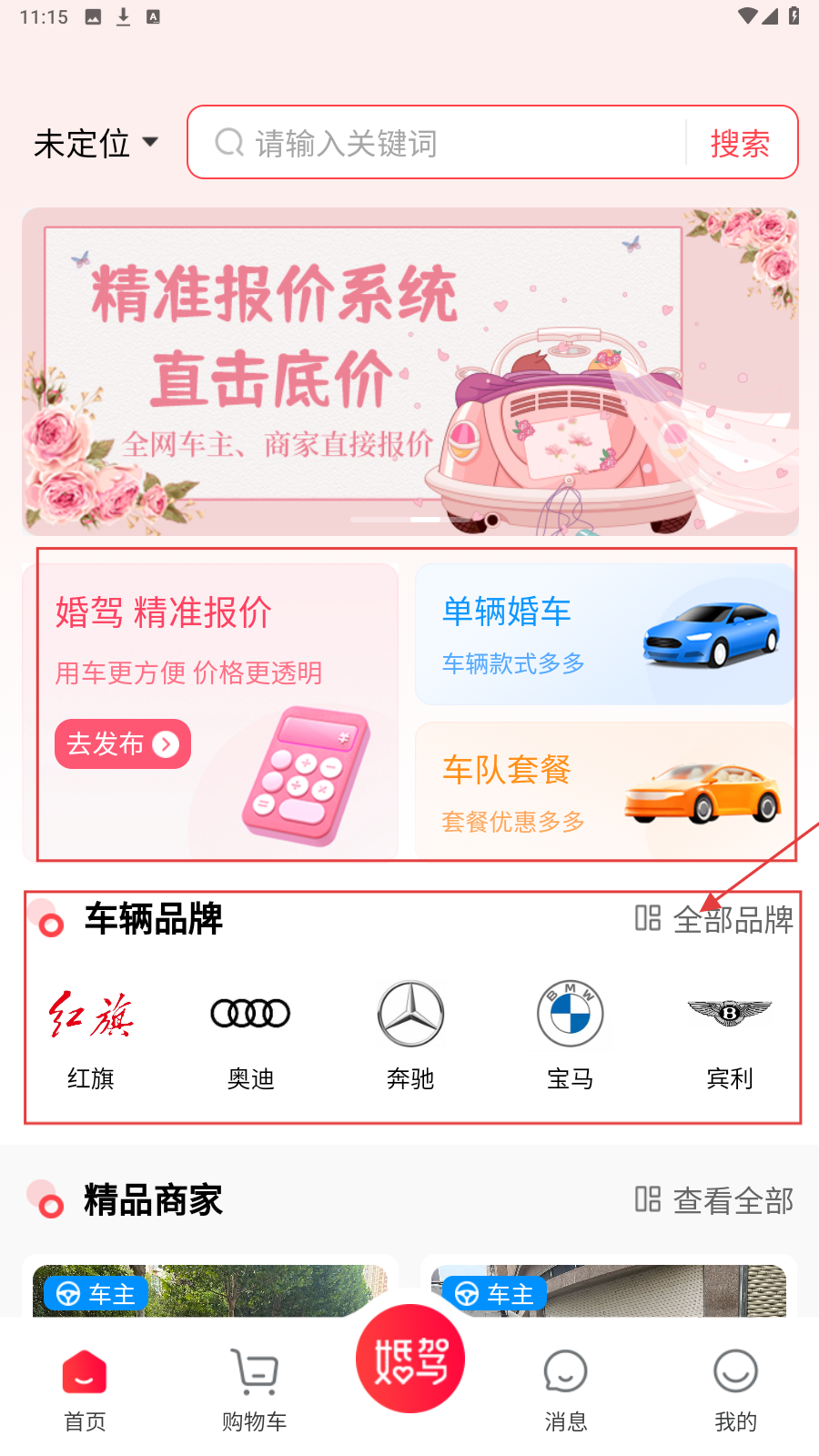 1、打开应用,在【首页】下方的车辆品牌栏中【全部品牌】按钮。