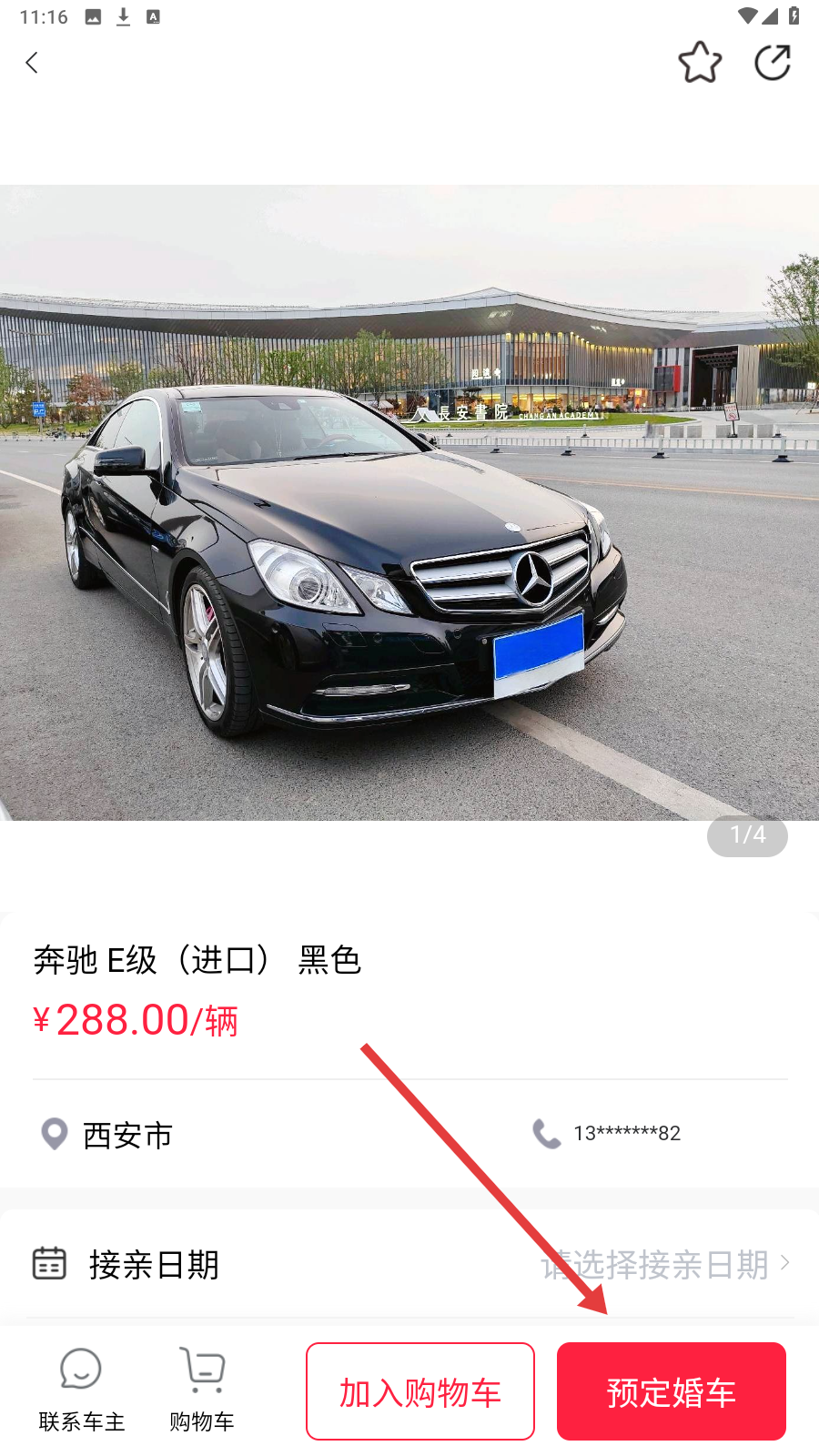 3、进入租车详情页面,查看车辆详细信息,如若满意点击【预定婚车】。