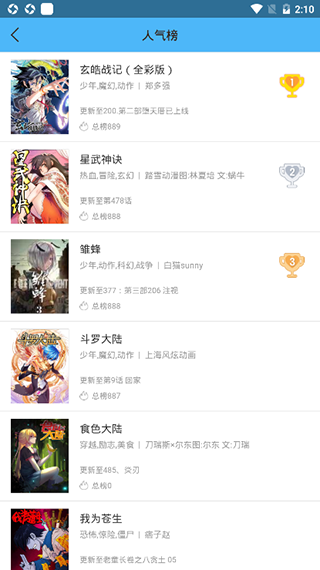 2、进入人气榜,看最剧人气的漫画