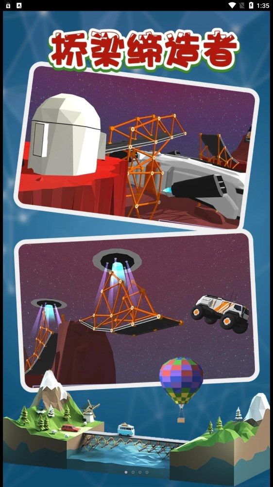 《桥梁缔造者》游戏内玩家必须使用各种材料和资源来建造一座桥,而且是只要能让车辆通过,就算你完成。游戏还是有卡通的画风,能让你更轻松的完成挑战,去获得更多奖励。游戏难度会不断提高,玩家要想更多办法来建造哦。