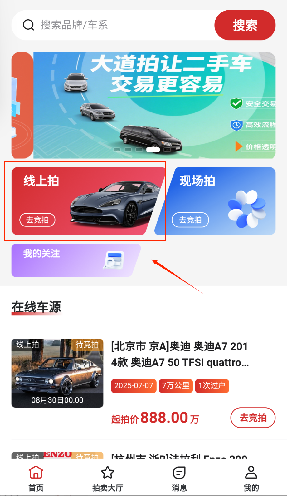 大道拍卖致力于为用户提供透明高效的车辆交易服务,平台汇聚全国优质车源,涵盖各类品牌车型,每辆展示车辆均经过专业检测并附详细评估报告,支持线上实时竞价和线下同步拍卖两种交易模式,竞拍过程公开透明,出价记录实时显示,内置的车辆检测工具可查看事故记录和维修历史。